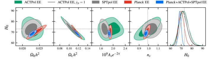 We currently have three E-mode datasets to work with: one from the Planck satellite, one from the Atacama Cosmology Telescope ACTPol Receiver, and one from the South Pole Telescope SPTpol camera. We can derive individual measurements of the Hubble constant from each of these datasets, but what if we combined them? A study by Graeme Addison (Johns Hopkins University) does exactly that.