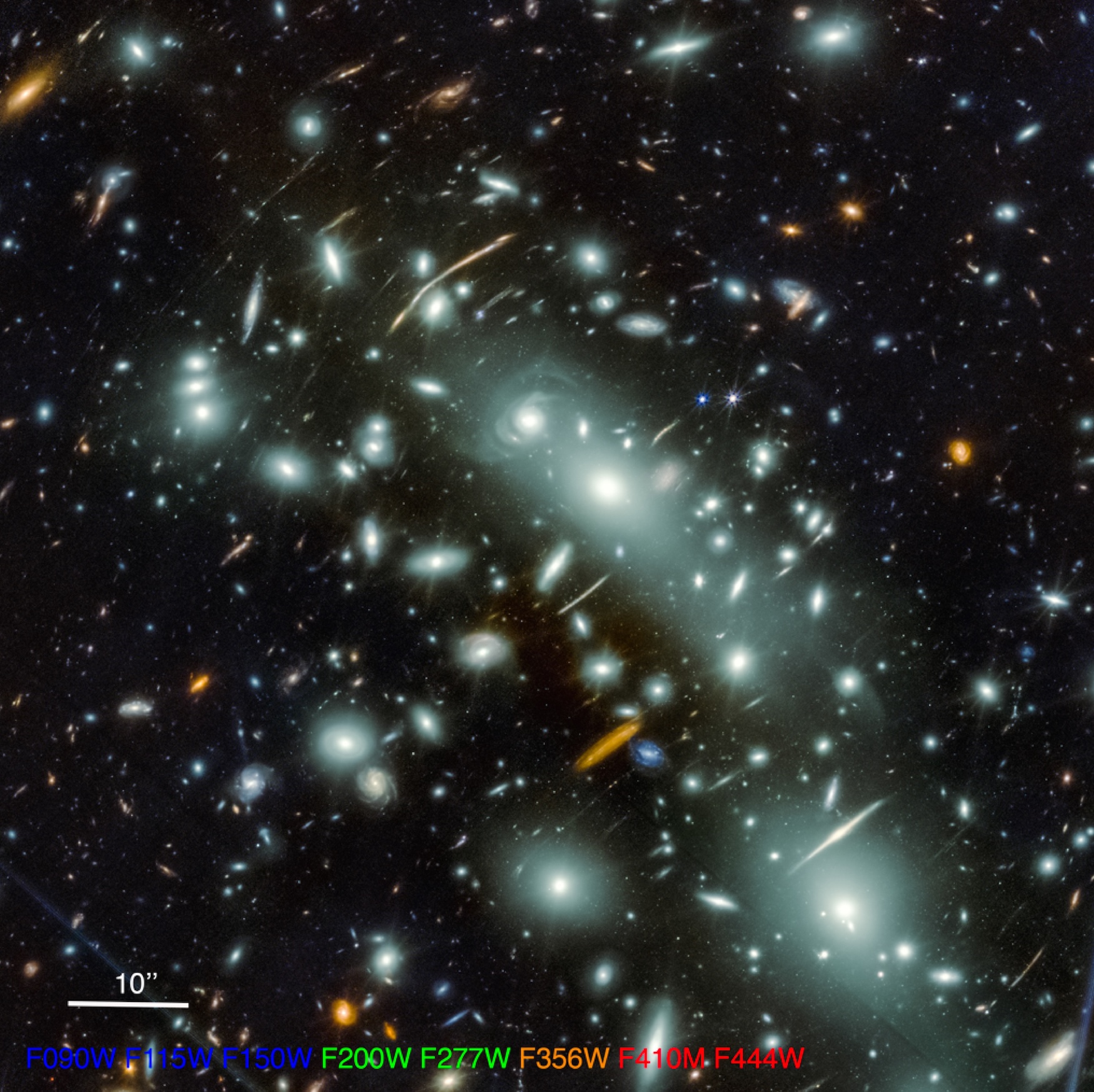 The expansive collection of galaxies pictured here is MACS J0416, a galaxy cluster located about 4.3 billion light-years away. (Click the image for the full view!) MACS J0416 is one of five clusters targeted by the Canadian NIRISS Unbiased Cluster Survey (CANUCS). This survey takes advantage of the spacetime-bending abilities of massive galaxy clusters and uses JWST’s Near-Infrared Imager and Slitless Spectrograph (NIRISS) and Near-Infrared Camera (NIRCam) to paint a detailed multi-wavelength portrait of galaxies in the early universe. Three of the CANUCS galaxy clusters, including MACS J0416, were investigated even more closely in the follow-up JWST in Technicolor program, which added precise spectroscopic redshifts and broadened the wavelength coverage of parallel fields of view. In a recent publication led by Ghassan Sarrouh (York University), the CANUCS team outlined the design of these programs and their data products, which enabled the study of roughly 53,000 galaxies within the galaxy cluster fields and an additional 44,000 galaxies in adjacent fields. To learn more about the CANUCS and JWST in Technicolor programs, be sure to check out the full research article linked below.